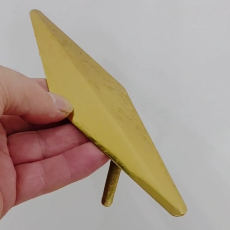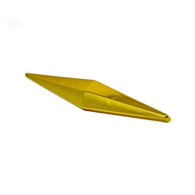 نما مبلی نیزه ای اعتبار ما گویای همه چیز است ما هیچ گونه محصولات بازاری تولید نداریم فقط اورجینال حداقل سفارش برای ارسال 4 عدد میباشد طول نیزه 20 عرض 5 سانت ضخامت ورق 2 میل تولید با دستگاه لیزر و خم برک ابکاری طلایی فورتیک این نمای فلزی در واقع یکی از اکسسوری های مبلمان به حساب می آید زیرا جنبه ی تزئینی دارند . یعنی بر زیبایی ظاهر مبلمان بسیار تاثیر گذار بوده و آن را مدرن جلوه می دهد . علت نام گذاری این نما ، اینست که حالت لوزی شکل دارد البته به علت تیز بودن دو طرف به آن نما نیزه نیز می گویند