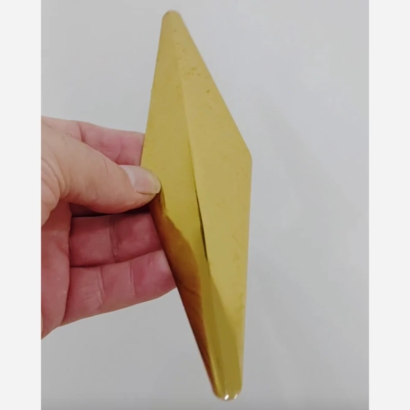 نما مبلی نیزه ای اعتبار ما گویای همه چیز است ما هیچ گونه محصولات بازاری تولید نداریم فقط اورجینال حداقل سفارش برای ارسال 4 عدد میباشد طول نیزه 20 عرض 5 سانت ضخامت ورق 2 میل تولید با دستگاه لیزر و خم برک ابکاری طلایی فورتیک این نمای فلزی در واقع یکی از اکسسوری های مبلمان به حساب می آید زیرا جنبه ی تزئینی دارند . یعنی بر زیبایی ظاهر مبلمان بسیار تاثیر گذار بوده و آن را مدرن جلوه می دهد . علت نام گذاری این نما ، اینست که حالت لوزی شکل دارد البته به علت تیز بودن دو طرف به آن نما نیزه نیز می گویند
